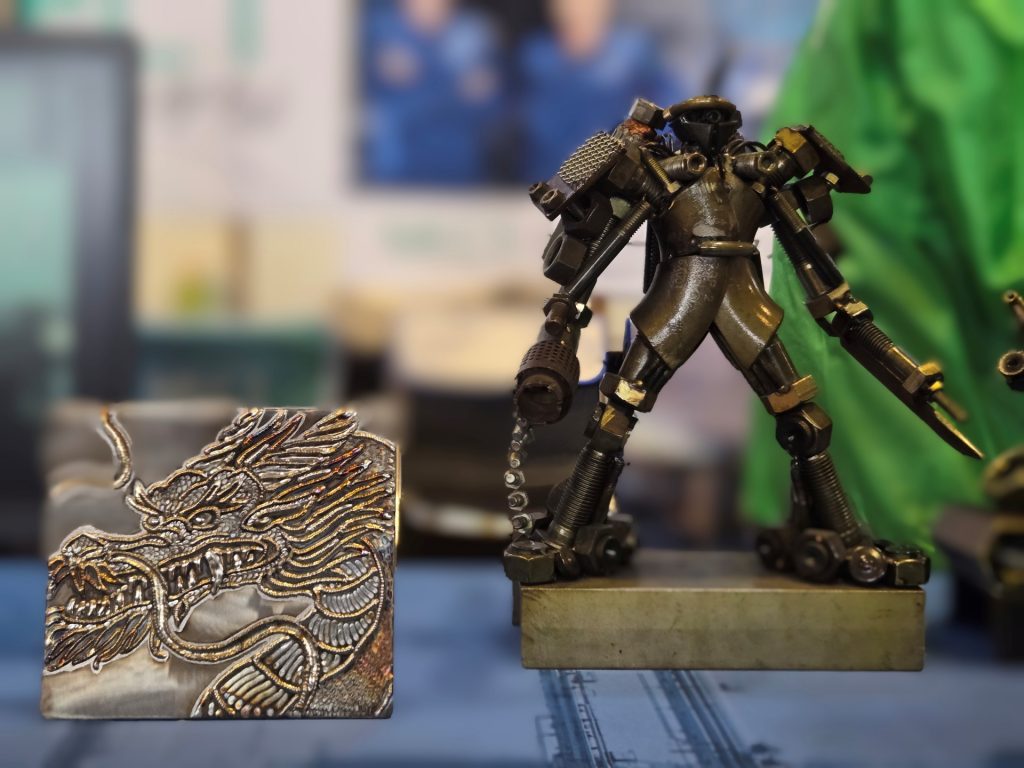 そして、「これも溶接でやったの?」と驚きの声が上がっていたのが、溶接アートの展示コーナー。無機質な金属に命が吹き込まれたような作品を前に、スマートフォンのカメラを向ける人の姿が絶えませんでした。